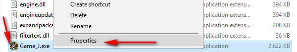 Đầu tiên quý nhân sĩ cần vào thư mục Võ lâm Sơn Hà Tích Sử và tìm tập tin Game_J.exe sau đó nhấn chuột phải chọn Properties.