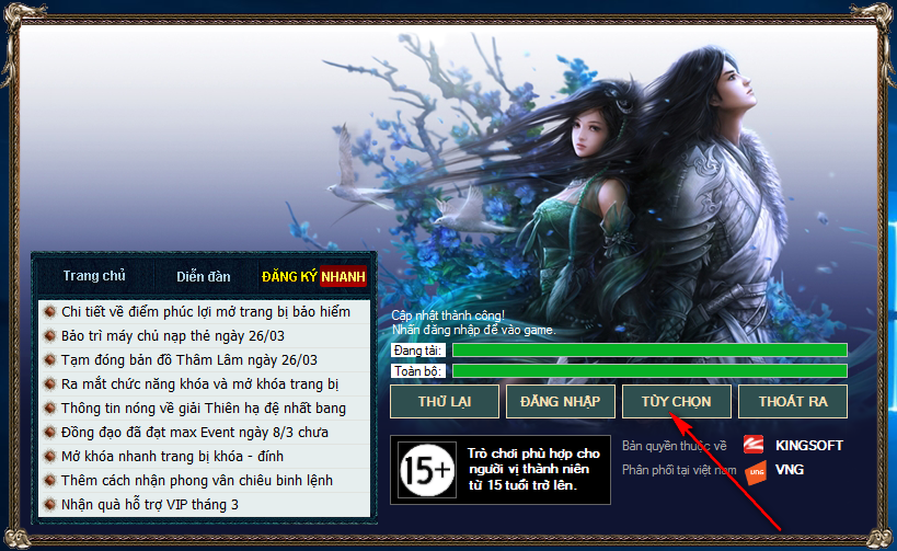Đầu tiên quý nhân sĩ phải khởi động AutoUpdate và nhấn vào mục Tùy chọn